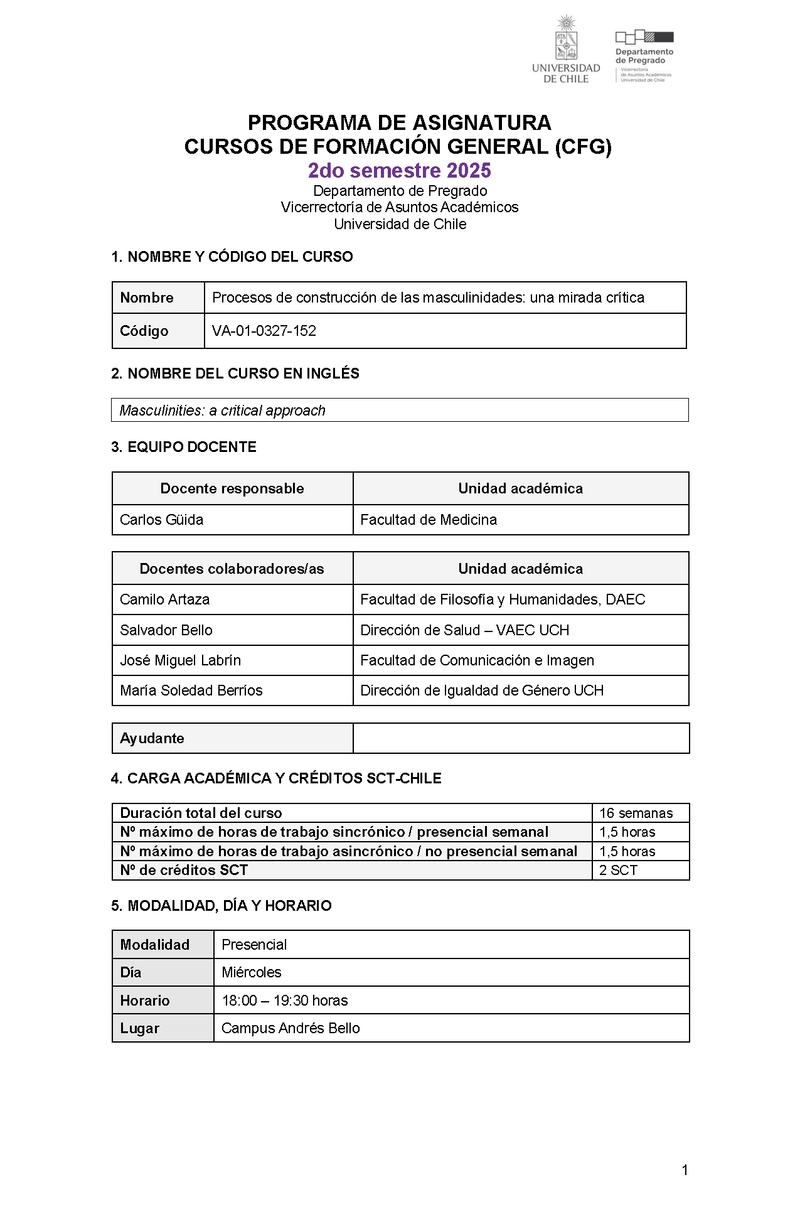 VA-01-0327-152-1 Procesos de construcción de las masculinidades: una mirada crítica 2025, Segundo Semestre