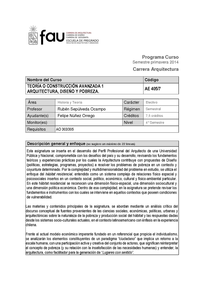 | Programa del Curso | AE400-2 2014-2.pdf | |