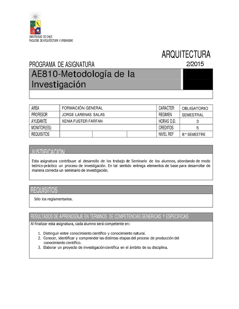 | Objetivos | CLASES SON EN SALA D-30 (Bloque D) PROGRAMA DEFINITIVO ACÁ: 1_PROGRAMA_CURSO_METODOLOGIA_DE_LA_INVESTIGACION.pdf (135,1 kb) DESCRIPCIÓN GENERAL Y ENFOQUE El curso está diseñado para ayudar a los estudiantes a aprender las habilidades, sensibilidades y comprensión necesarias para transformarse en un buen investigador en temas de planificación y estudios urbanos. Durante la primera mitad del curso, se mostrarán una variedad de estrategias de diseño de investigación, y las metodologías y técnicas asociadas, a partir de las cuales los estudiantes desarrollarán una propuesta de investigación que refleje sus propios intereses. En una segunda parte, se trabajará en base a un modelo de tutorías colaborativas, poniendo énfasis en la coherencia lógica del Seminario de Investigación (escritura y argumentación científica), y en los dispositivos de producción de información. En éstas clases se entregarán y discutirán contenidos teóricos y luego se trabajará haciendo revisión de pares entre los estudiantes. RESULTADOS DE APRENDIZAJE EN TÉRMINOS DE COMPETENCIAS GENÉRICAS Y ESPECÍFICAS Al finalizar esta asignatura, cada alumno deberá demostrar ser competente en: 1. Entender los componentes clave del diseño de una investigación 2. Identificar los supuestos, las fortalezas y las debilidades, de las diferentes estrategias y proyectos de investigación (incluyendo el todo y las partes, como el uso de literatura y teoría, métodos, datos y análisis) 3. Diseñar y ser capaz de describir (y justificar las decisiones) un proyecto de investigación para un tema específico, con autonomía y creatividad 4. Refinar técnicas de escritura académica y de argumentación científica, en las distintas secciones del Seminario de Investigación CONTENIDOS Y FECHAS SEMANA 1. Presentación del curso, introducción a la investigación en planificación y estudios urbanos, y su carácter interdisciplinario SEMANA 2. Método científico, epistemologías y paradigmas en estudios urbanos, temas de investigación, preguntas y definiciones metodológicas SEMANA 3. Revisión de literatura y creación de marco teórico: fuentes de información, vacíos en el conocimiento, ética y plagio SEMANA 4. Investigación cuantitativa: fundamentos y técnicas de recolección y análisis de datos SEMANA 5. Investigación cualitativa: fundamentos y técnicas de recolección y análisis de datos SEMANA 6. Los estudios de caso como técnica mixta (recolección y análisis de datos) y elaboración del proyecto de investigación SEMANA 7. Construcción de argumentos científicos (validez, confiabilidad, generalización) y tutoría de escritura I (Marco Teórico). Entrega Trabajo 1: Proyecto de Investigación SEMANA 8. Tutoría de escritura II: Marco Teórico (contenidos + revisión de pares) SEMANA 9. Tutoría de escritura III: Marco Teórico (contenidos + revisión de pares) SEMANA 10. Tutoría de escritura IV: Capítulo Metodología (contenidos + revisión de pares) SEMANA 11. Tutoría de escritura V: Introducción (contenidos + revisión de pares). Entrega Trabajo 2: Capítulos Marco Teórico y Metodología SEMANA 12. Tutoría de escritura VI: Capítulo(s) de resultados (contenidos + revisión de pares) SEMANA 13. Tutoría de escritura VII: Capítulo(s) de resultados (contenidos + revisión de pares) SEMANA 14. Entrega Trabajo 3: Capítulo Resultados. Revisión de pares SEMANA 15. Tutoría de escritura VIII: Conclusiones (contenidos + revisión de pares) SEMANA 16. La defensa del Seminario de Investigación (contenidos + revisión de pares). Entrega informe Seminario de Investigación a profesores guía SEMANA 17. Ensayo defensa Seminario de Investigación ESTRATEGIAS DE ENSEÑANZA-APRENDIZAJE (METODOLOGÍA) Cada sesión está organizada alrededor de un tema y apoyada por una serie de lecturas. Cada sesión va a partir con un control de lectura (primeros 20 minutos, a partir de las lecturas obligatorias) y luego va a combinar una clase del equipo docente con discusiones abiertas y/o presentaciones de los estudiantes. Durante la primera mitad del curso, cada clase se dividirá entre sesión lectiva y discusiones. Y en la segunda mitad, cada clase se dividirá entre sesión lectiva y revisión de pares. Además, el ayudante del curso (Hernán Orozco) va a recibir personalmente a cada estudiante, al menos dos veces, durante el proceso de formulación de su problema de investigación (antes de la Semana 7). Los estudiantes están llamados a desafiar y criticar las ideas puestas sobre la mesa, pensar en alternativas y desarrollar análisis comparativos. Están invitados a enriquecer la conversación con ejemplos de investigaciones en las cuales hayan participado o que hayan leído, o con preguntas que les hayan surgido a partir de las lecturas. SISTEMA DE EVALUACIÓN Este será un curso de un ALTO NIVEL DE EXIGENCIA ACADÉMICA, el cual será evaluado de la siguiente manera: 1. CONTROLES DE LECTURA (30%): Se considera que la lectura es esencial para que los estudiantes preparen la materia antes de asistir a clases. Y la única forma de asegurarlo es a través de controles periódicos. Evaluación: en los primeros 20 minutos de cada clase (1 por semana), se desarrollará una prueba de alternativas simple y breve. Al finalizar los 20 minutos se entregará al equipo docente. Los horarios serán exigidos de forma muy estricta. Nota: Pasados los 20 minutos, no se aceptará la entrega de controles y se pondrá nota 1.0 (por atraso). La no entrega de un control por inasistencia implicará nota 1.0 en el control, y además, una nota 1.0 adicional que se sumará al promedio. 2. PARTICIPACIÓN EN CLASES (15%): Más allá de la asistencia y la puntualidad, la participación de los estudiantes es importantísima para el desarrollo de las clases. Evaluación: la participación será evaluada tomando nota de los comentarios y/o preguntas elaboradas por los estudiantes durante la clase. Se espera a lo menos 1 inter