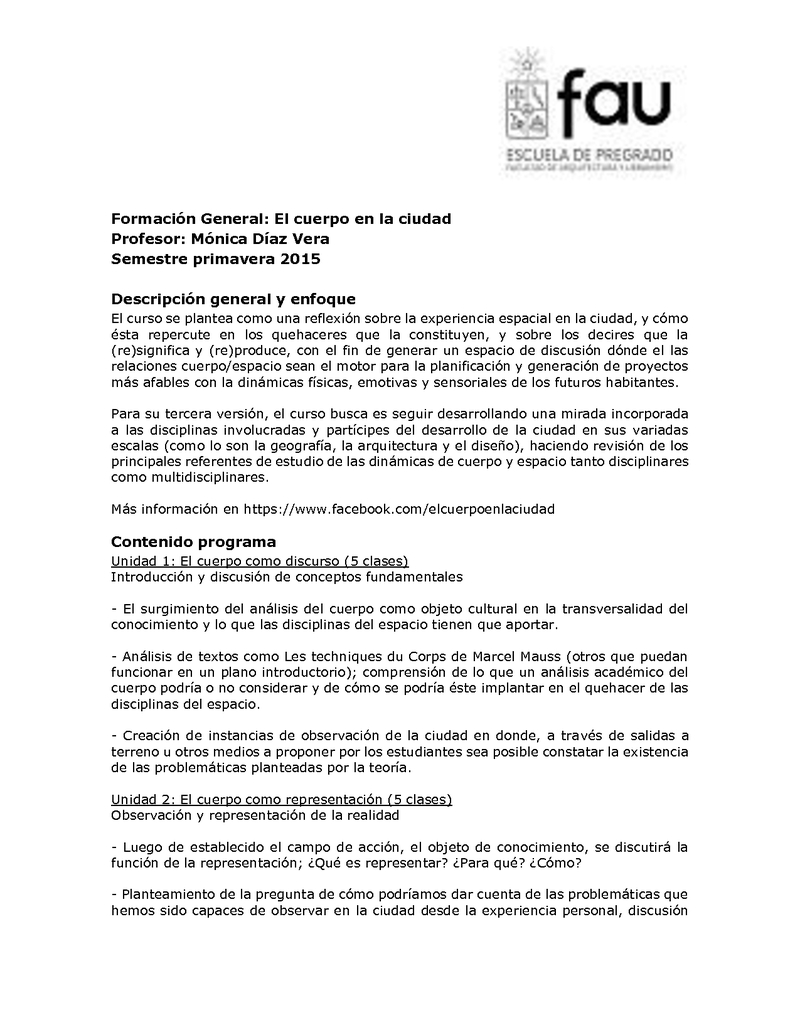 FG-ARQ104-1 El Cuerpo en la Ciudad: discursos y representaciones de la experiencia espacial en el territorio 2015, Segundo Semestre