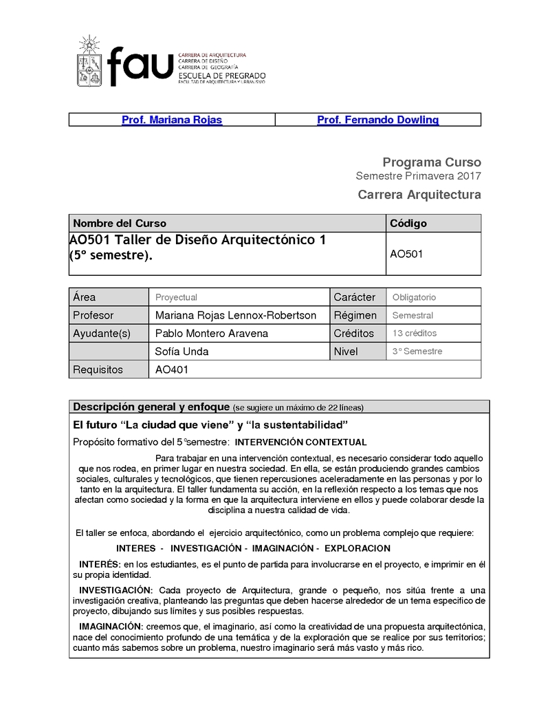 Institución Facultad de Arquitectura y Urbanismo Facultad de Arquitectura y Urbanismo