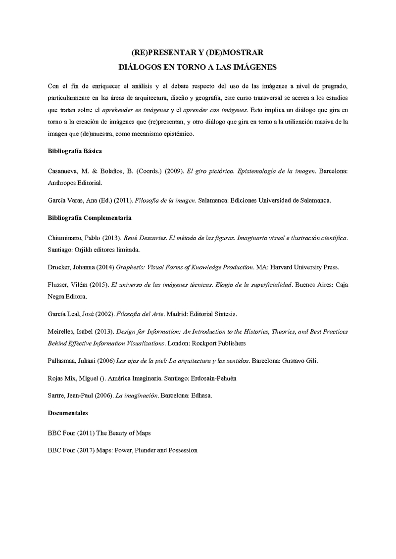 AU050019-1 Transversal FAU: (Re)presentar y (de)mostrar diálogos en torno a las imágenes 2018, Segundo Semestre