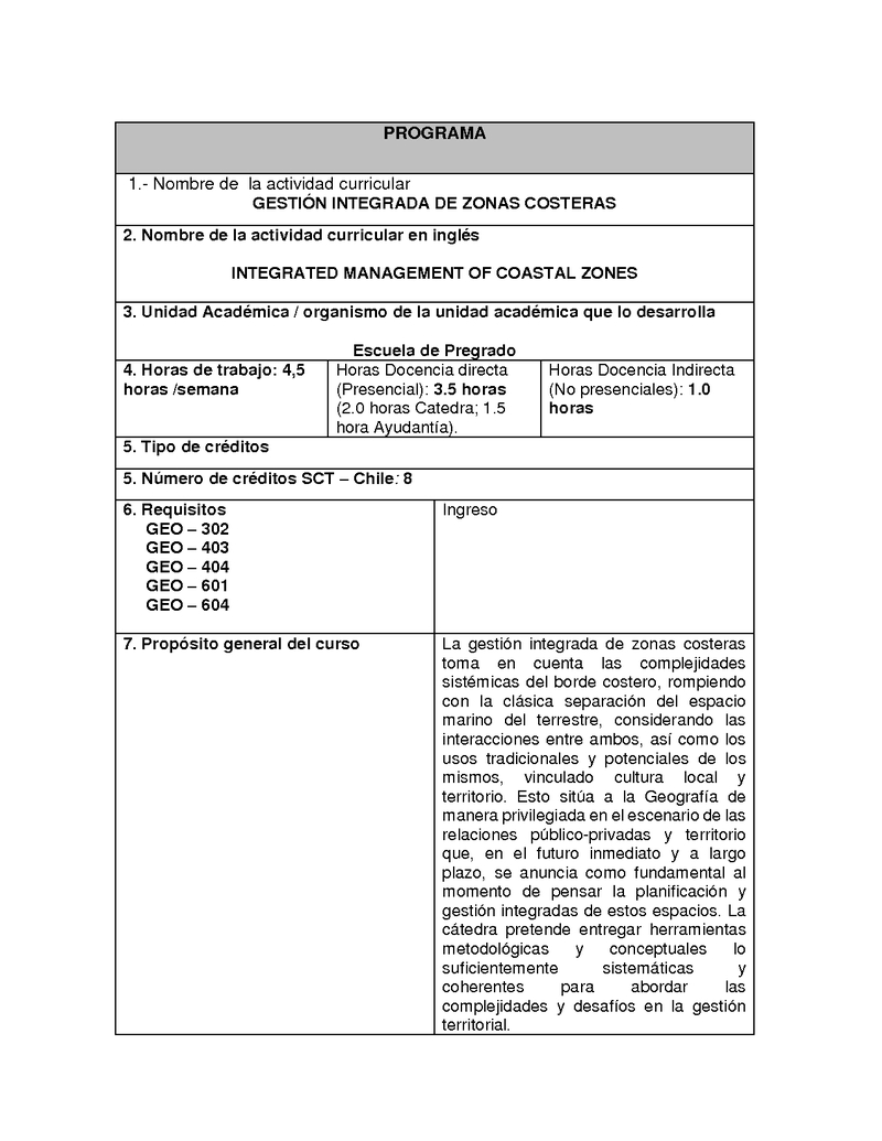 AUG60011-1 Electivo de especialización: Gestión integrada de zonas costeras 2018, Segundo Semestre