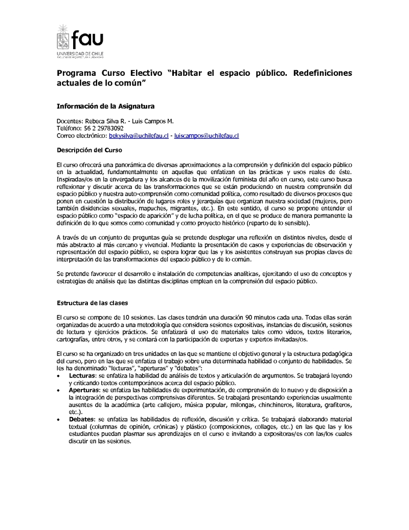 HR2061-1 Electivo 1: Habitar el espacio público. Redefiniciones actuales de lo común 2018, Segundo Semestre