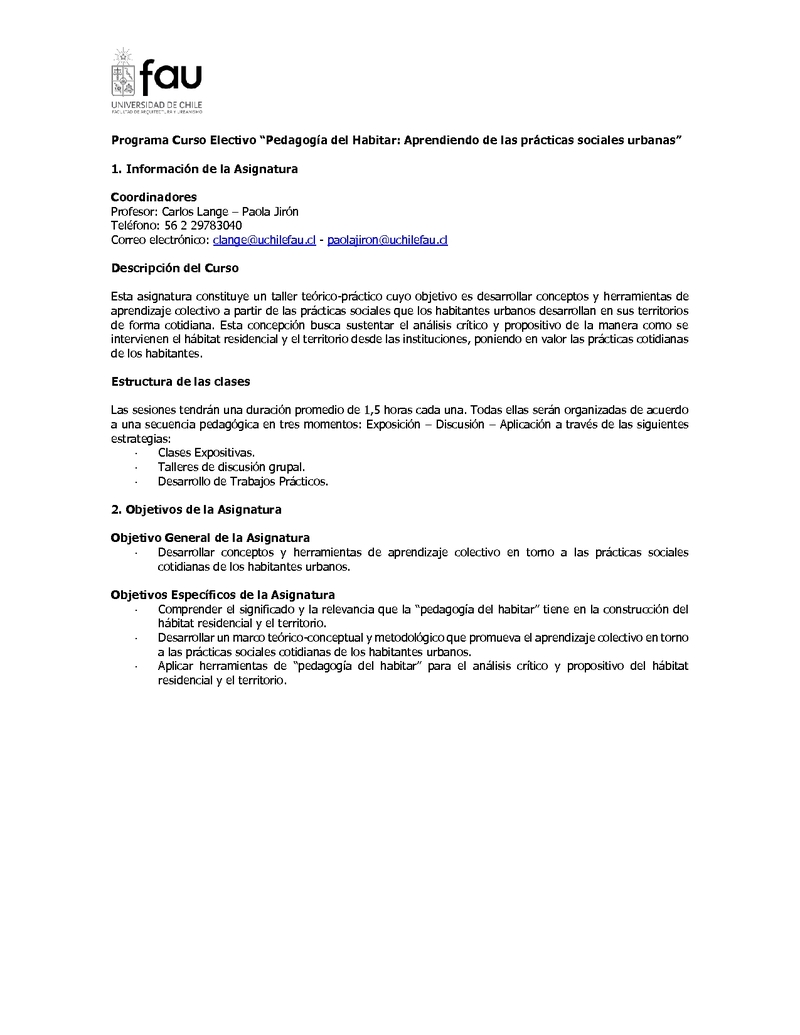 HR3021-1 Electivo 2: Pedagogía del habitar: Aprendiendo de las prácticas sociales urbanas 2018, Segundo Semestre