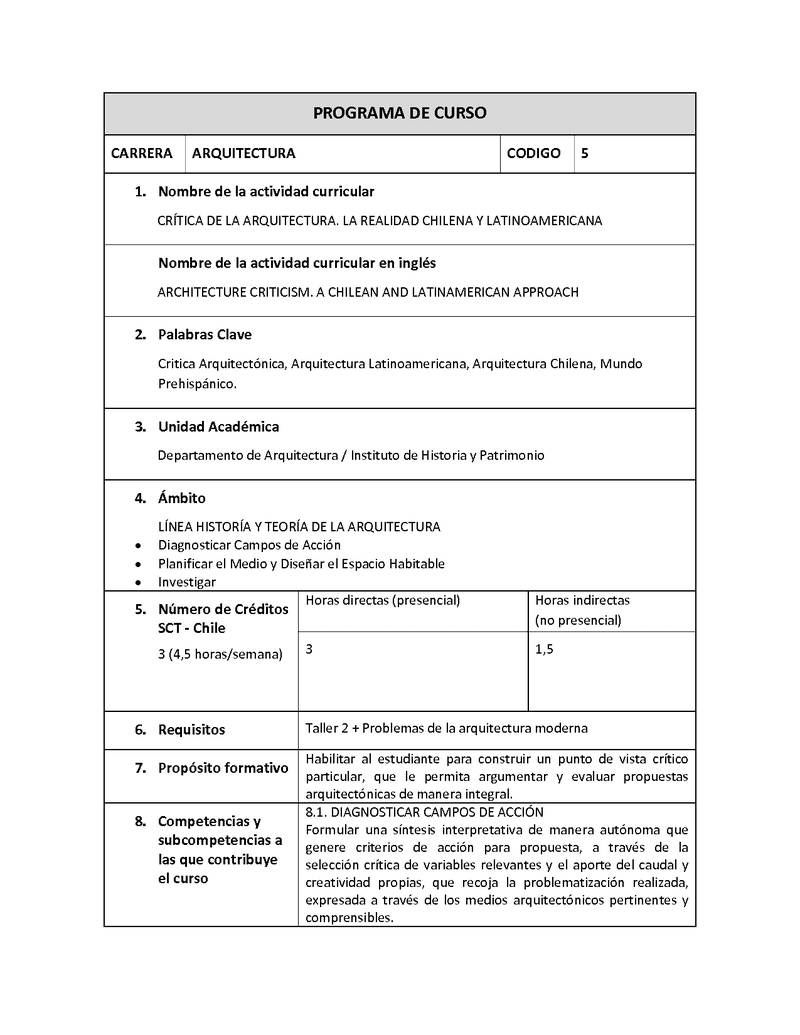 AUA50002-2 Crítica de la Arquitectura; la realidad chilena y latinoamericana 2019, Primer Semestre