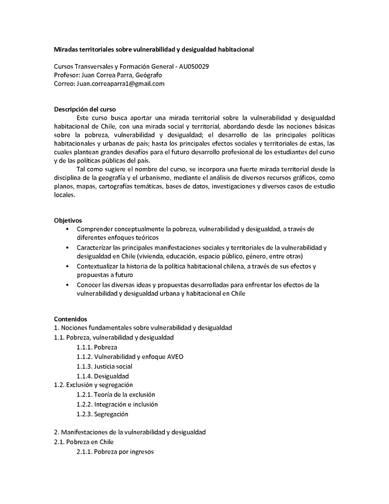 AU050029-1 Transversal FAU: Miradas territoriales sobre vulnerabilidad y desigualdad habitacional 2019, Segundo Semestre