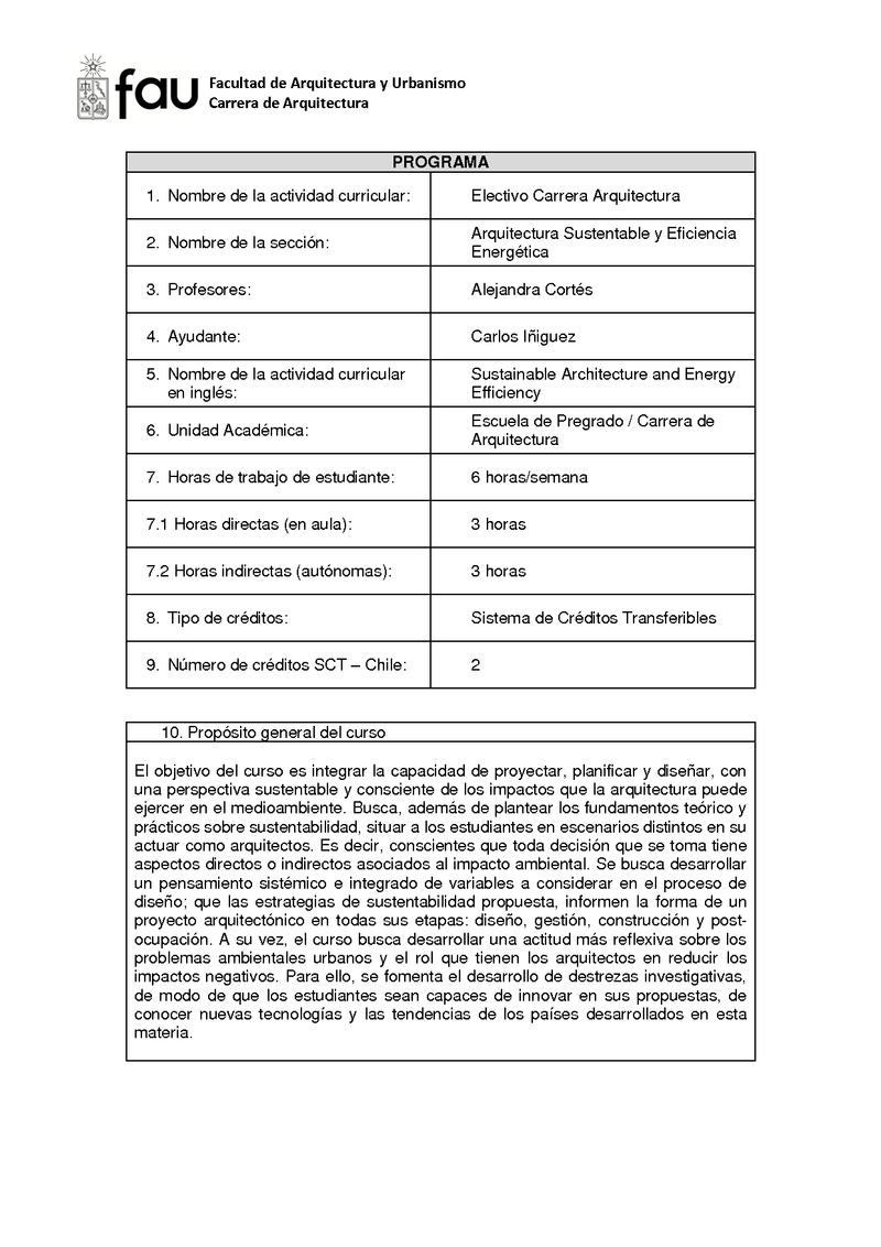 AUA60009-1 Electivo de especialización: Arquitectura sustentable y eficiencia energética 2019, Segundo Semestre