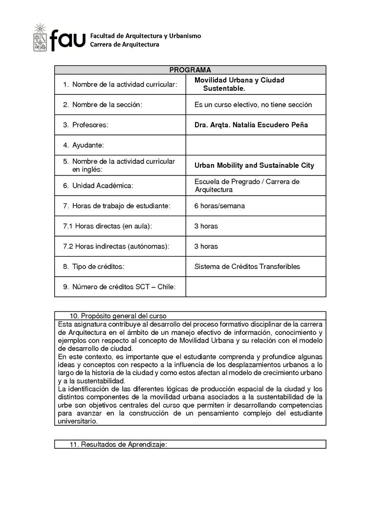 AUA60064-1 Electivo de especialización: Movilidad Urbana y Ciudad Sustentable 2019, Segundo Semestre