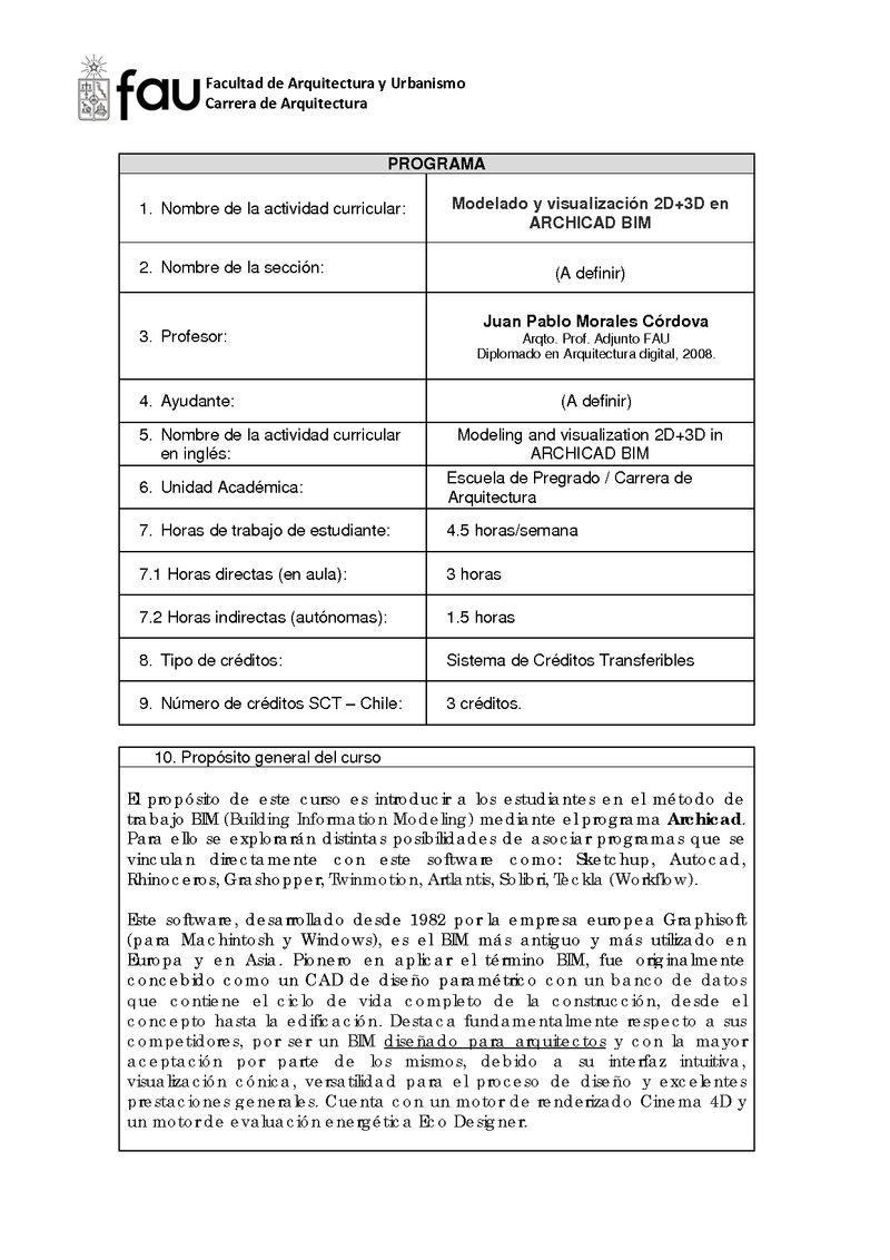 AUA70054-1 Electivo de especialización: Modelado y visualización 2D+3D en ARCHICAD BIM 2019, Segundo Semestre