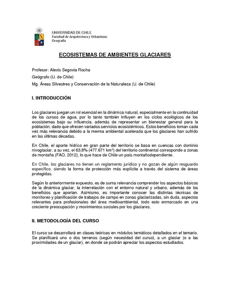 AUG60013-1 Electivo de Especialización: Ecosistemas en ambientes glaciares 2019, Segundo Semestre