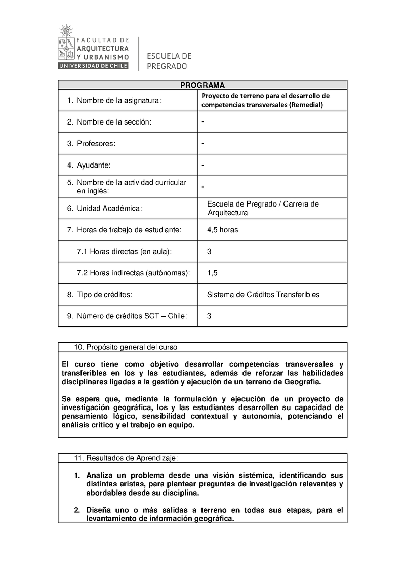 Transversal FAU: Proyecto de terreno para el desarrollo de competencias transversales (Remedial de habilidades transversales Geografía)