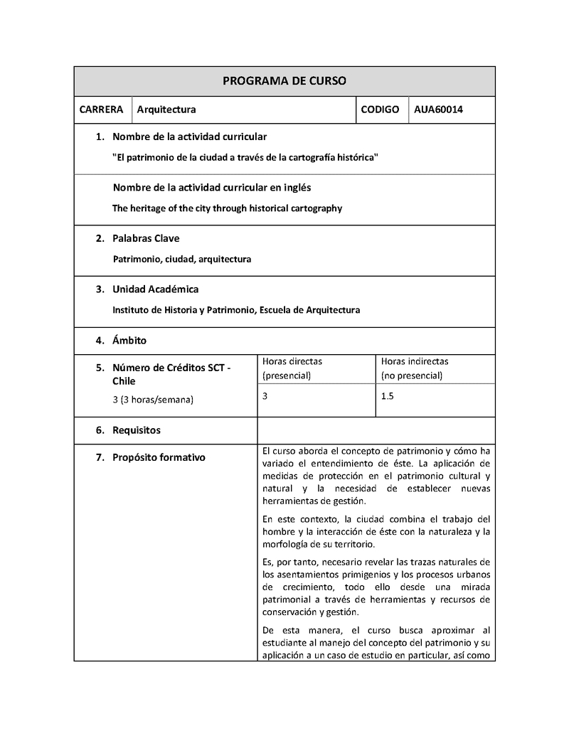 AUA60014-1 Electivo de especialización: El patrimonio de la ciudad a través de la cartografía histórica 2022, Segundo Semestre