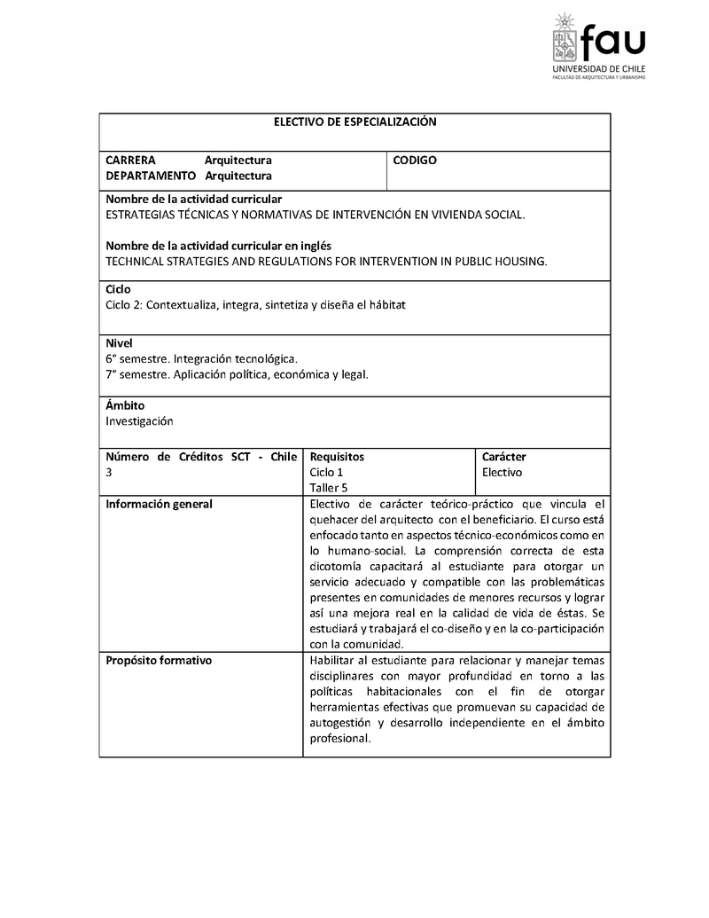 Electivo de especialización: Estrategias técnicas y normativas de intervención en vivienda social