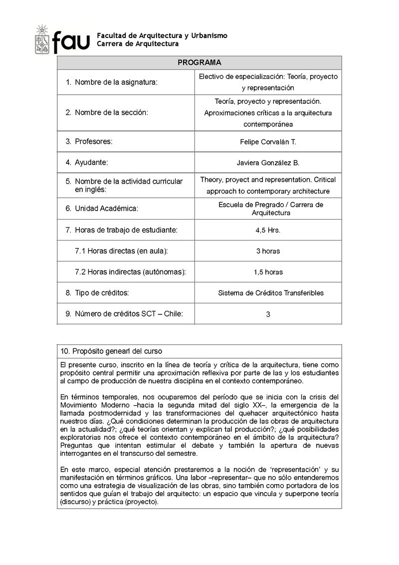 Electivo de especialización: Teoría, proyecto y representación. Aproximaciones a la arquitectura contemporánea