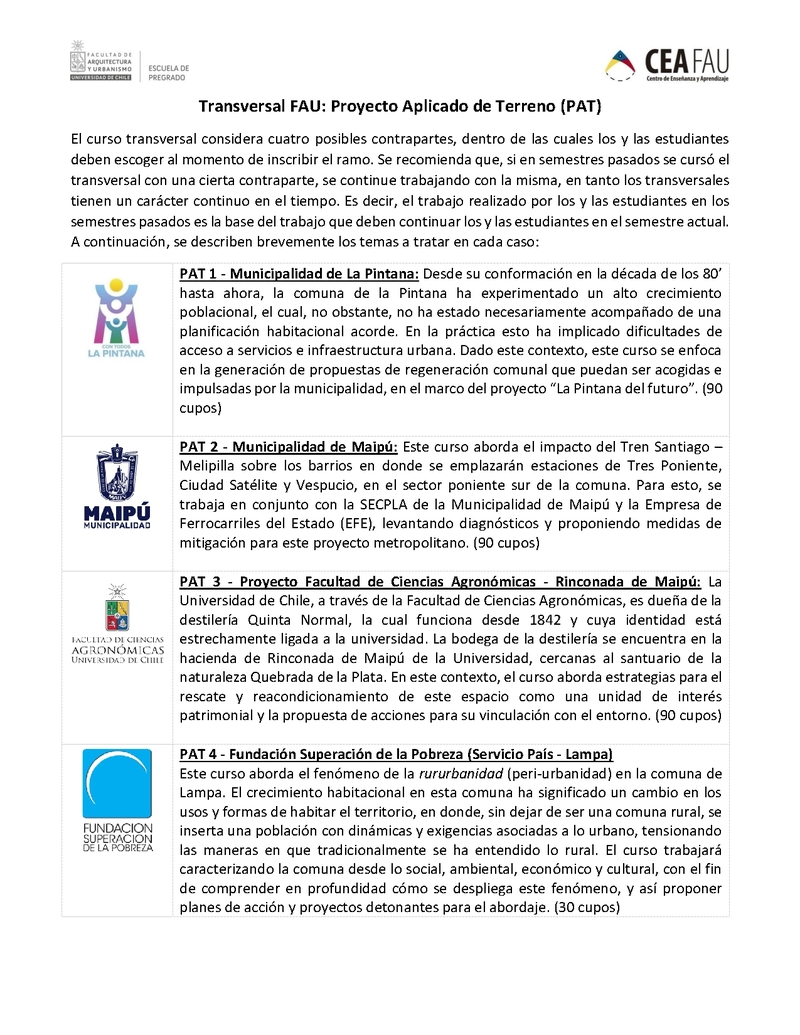 Transversal FAU: Proyecto aplicado de terreno (Proyecto FCA Rinconada de Maipú)