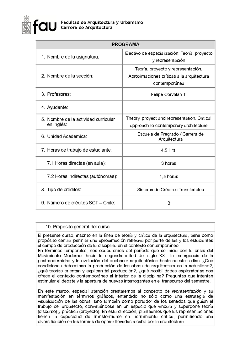 AUA70058-1 Electivo de especialización: Teoría, proyecto y representación. Aproximaciones a la arquitectura contemporánea 2023, Segundo Semestre