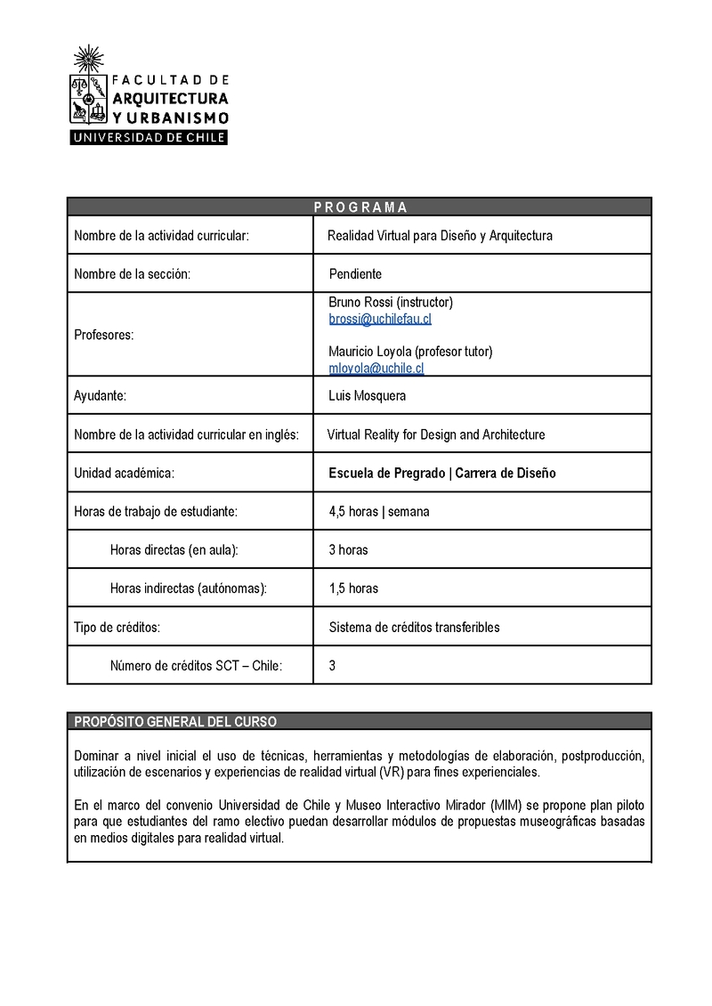 AUA70088-1 Electivo de especialización: Realidad virtual para diseño y arquitectura 2023, Segundo Semestre