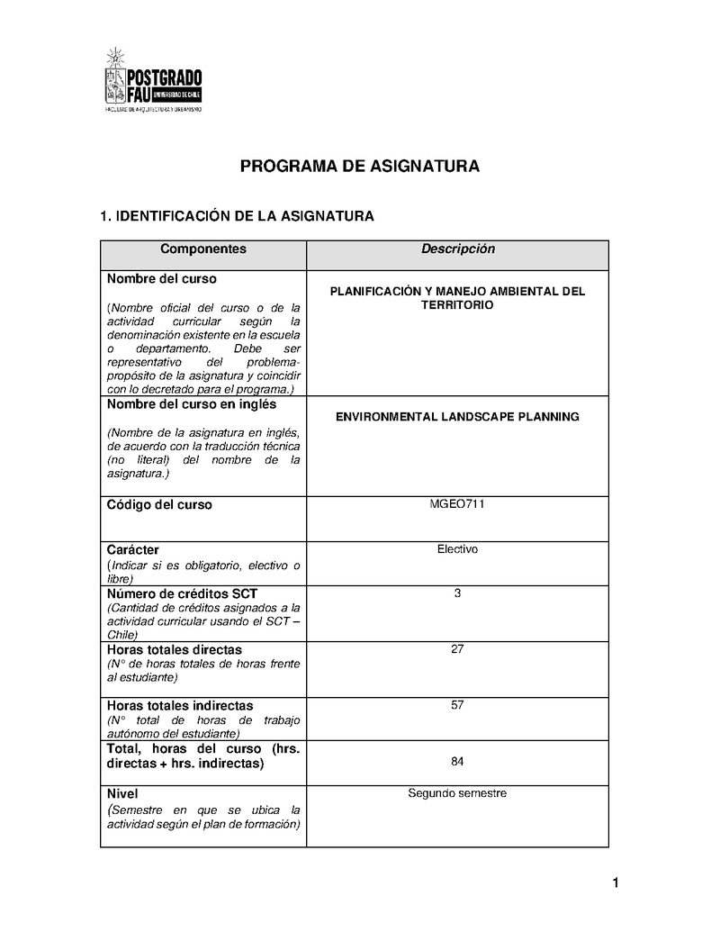 MGEO8117-1 Electivo de especialización Geografía: Planificación y manejo ambiental del territorial 2023, Segundo Semestre