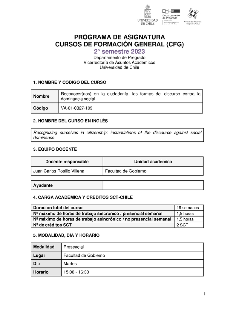 VA-01-0327-109-1 Reconocer(Nos) en la Ciudadanía: las Formas del Discurso contra la Dominancia Social 2023, Segundo Semestre