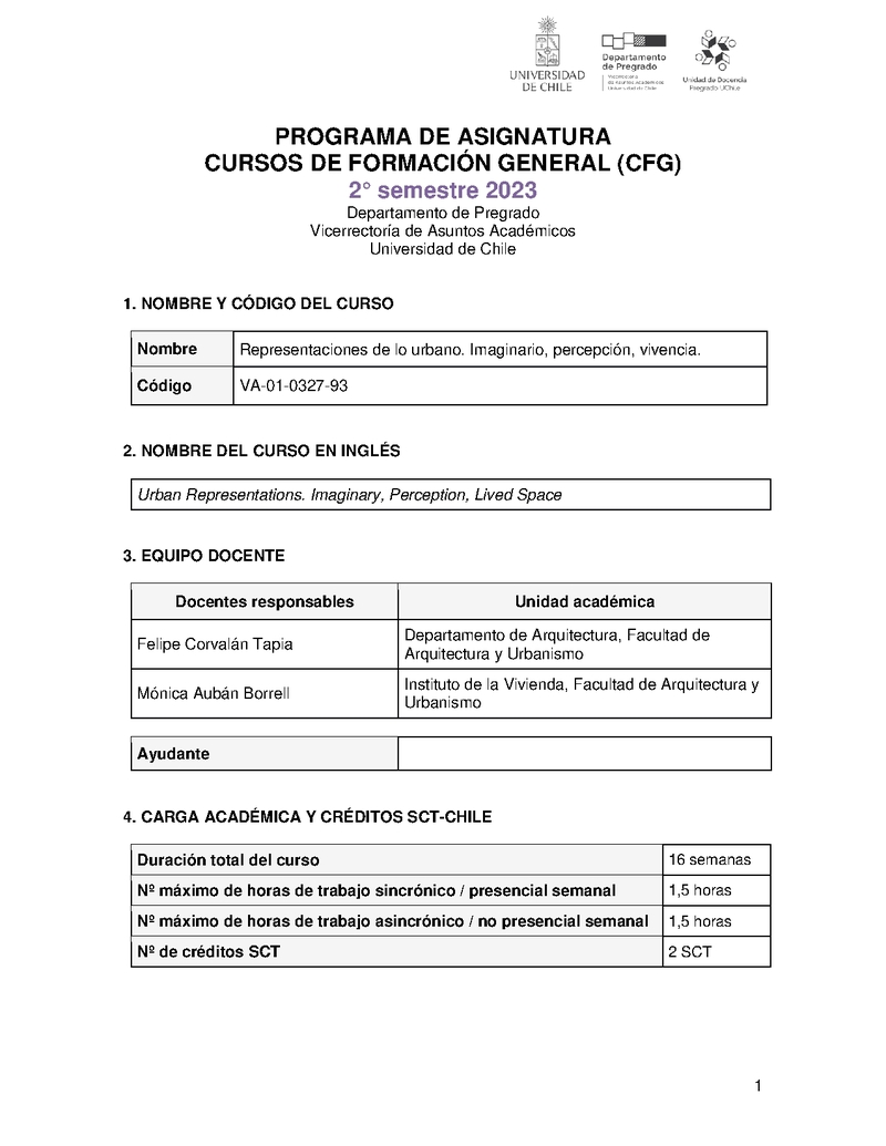 VA-01-0327-93-1 Representaciones de lo Urbano. Imaginario, Percepción, Vivencia 2023, Segundo Semestre