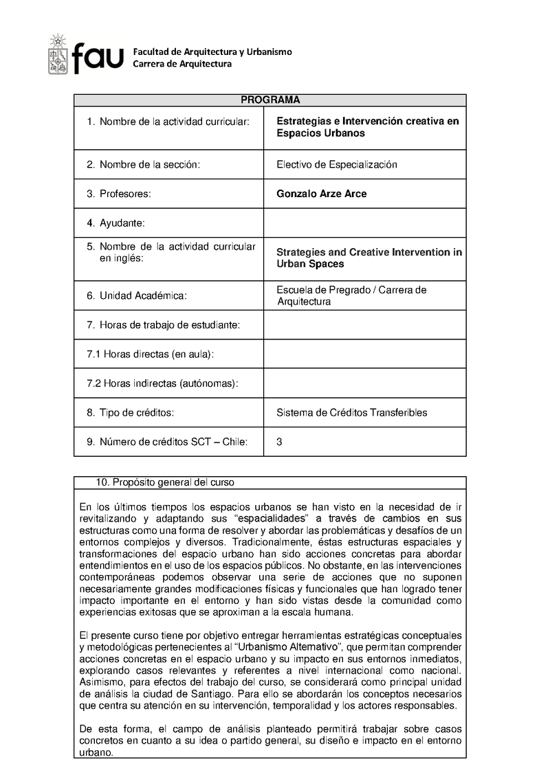 Electivo de especialización: Estrategias e Intervención creativa en Espacios Urbanos