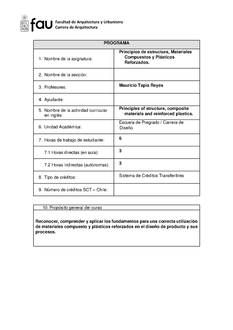 AUA60124-1 Electivo de Especialización: Principios de estructuras, materiales compuestos y plásticos reforzados 2024, Segundo Semestre