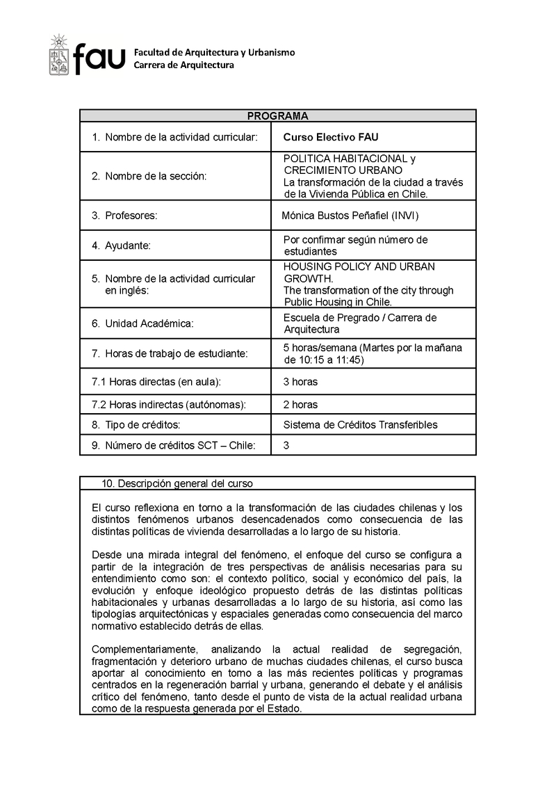 AUA70074-1 Electivo de especialización: Política Habitacional y Crecimiento Urbano: La transformación de la ciudad a través de la Vivienda Pública en Chile 2024, Segundo Semestre