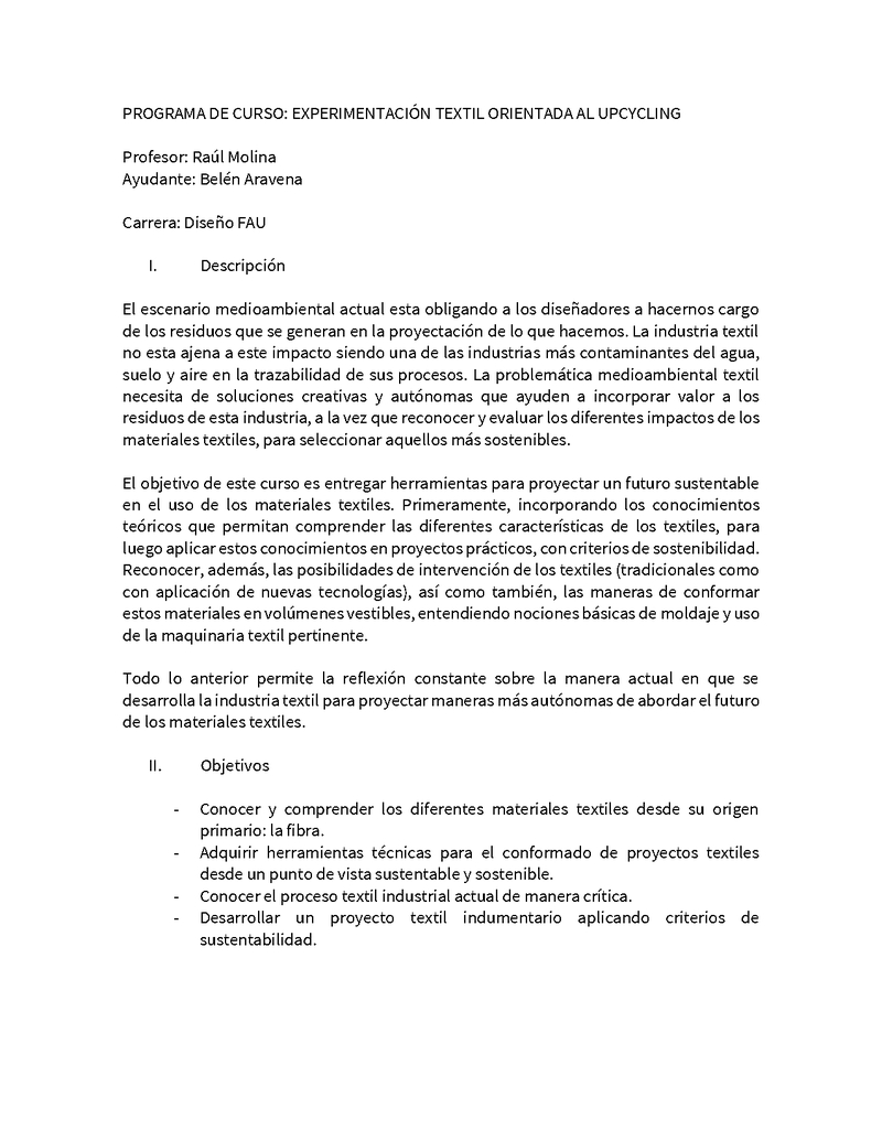 AUD7I023-1 Electivo Mención I y S: Experimentación textil orientada al upcycling 2024, Segundo Semestre
