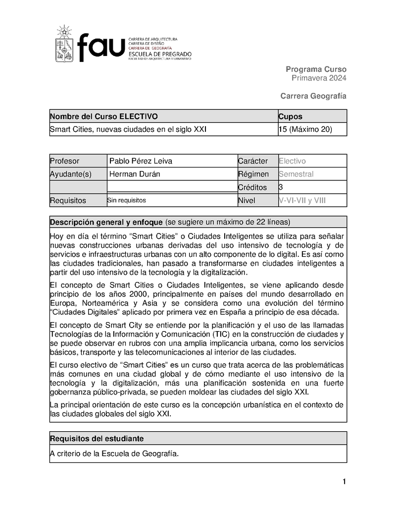 AUG60043-1 Electivo de especialización: Smart Cities, nuevas ciudades en el siglo XXI 2024, Segundo Semestre