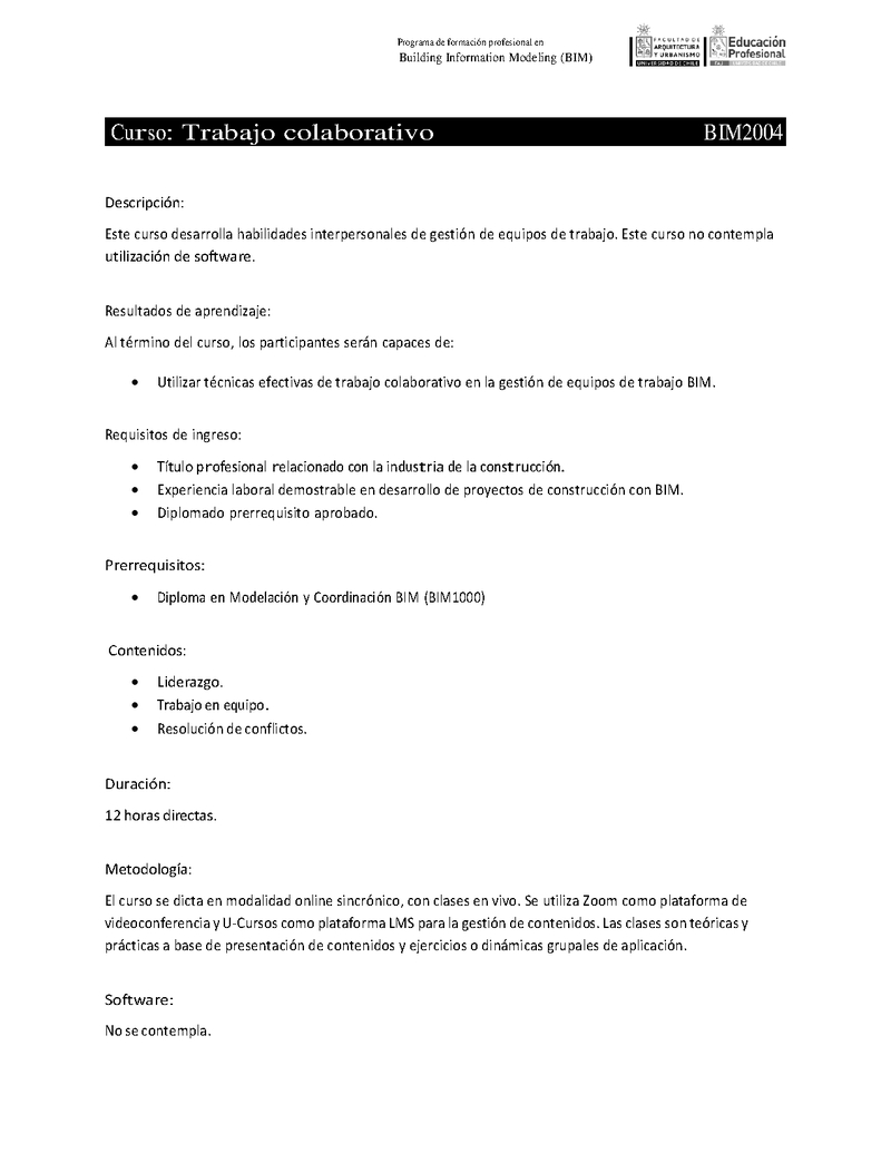 | Descripción | Programa de asignatura Módulo Trabajo Colaborativo | |