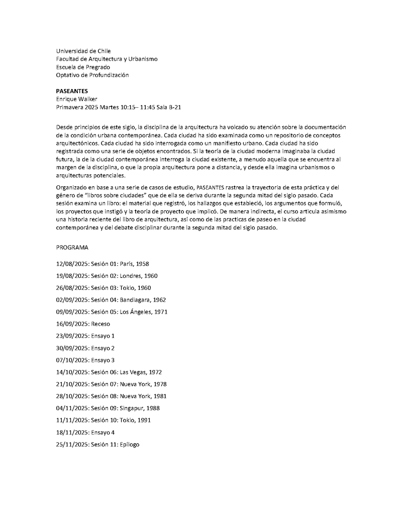 AUA00024-1 Optativo de Profundización: Electivo de Postgrado: Paseantes 2025, Segundo Semestre