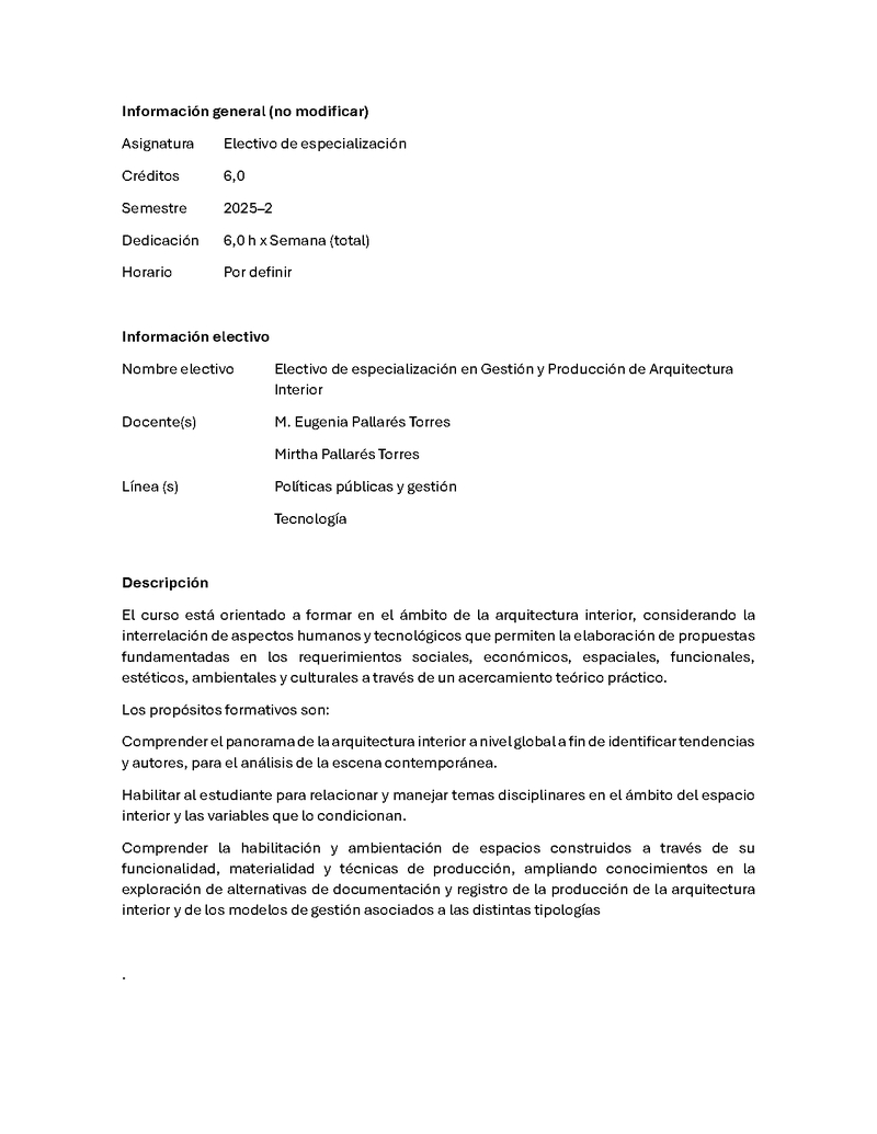 AUA60075-1 Electivo de especialización: Gestión y producción de arquitectura interior 2025, Segundo Semestre