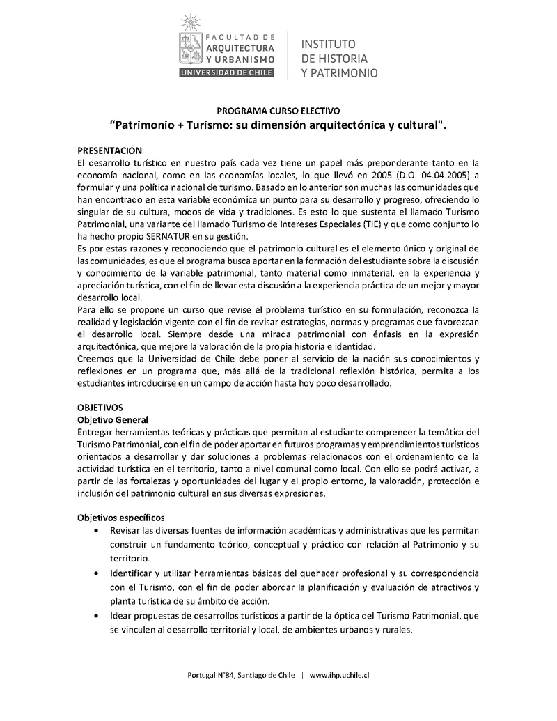 Electivo de especialización: Patrimonio + Turismo: su dimensión arquitectónica y cultural