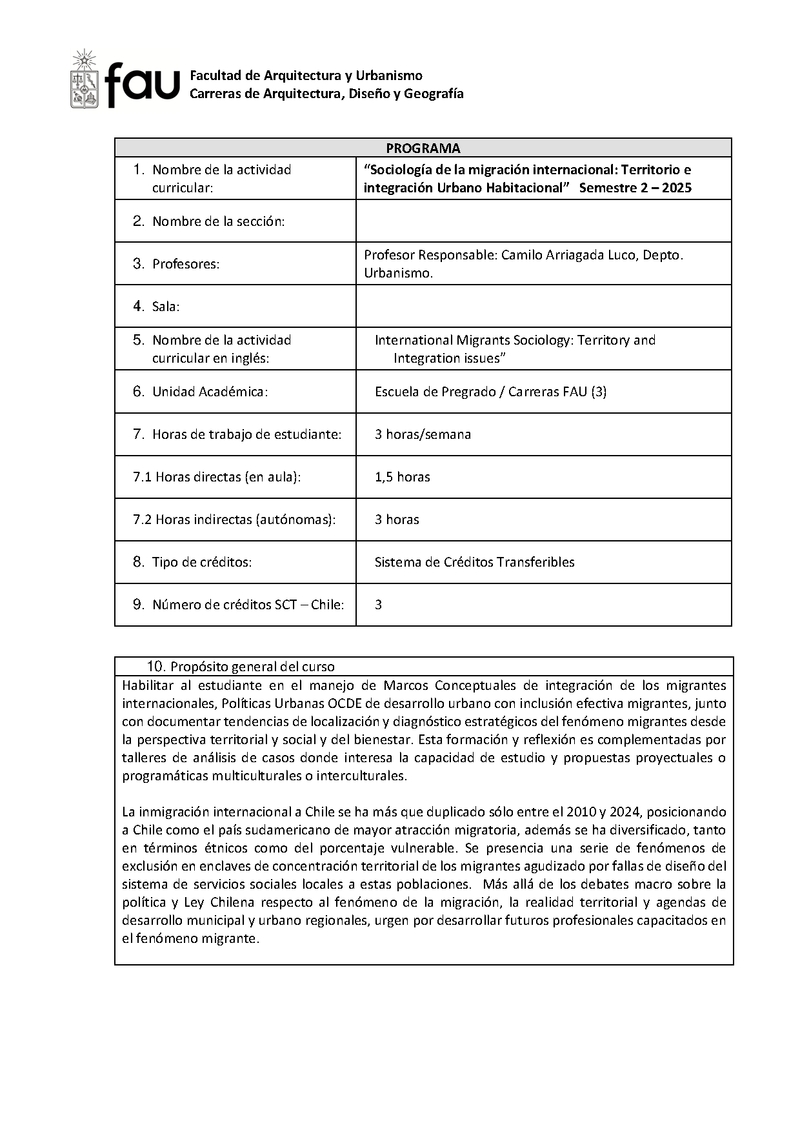 AUA60116-1 Electivo de Especialización: Sociología migración internacional: territorio e integración 2025, Segundo Semestre