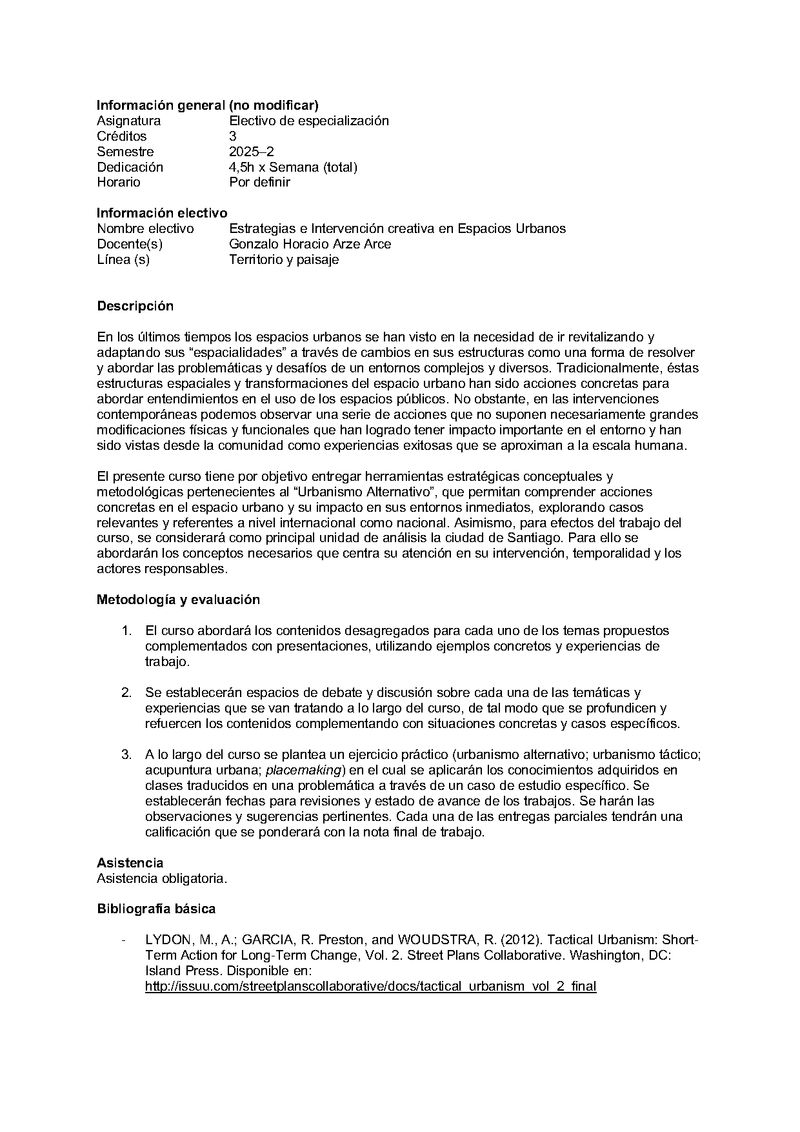 Electivo de especialización: Estrategias e Intervención creativa en Espacios Urbanos