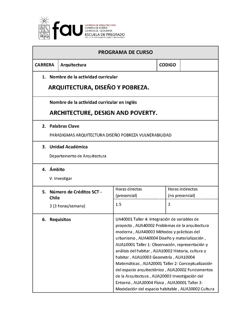 Institución Facultad de Arquitectura y Urbanismo Facultad de Arquitectura y Urbanismo