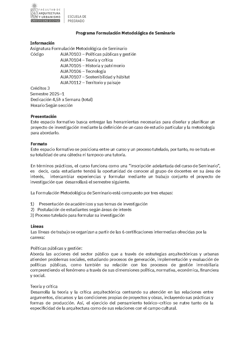 AUA70107-1 Formulación metodológica del seminario: sostenibilidad y hábitat 2025, Segundo Semestre