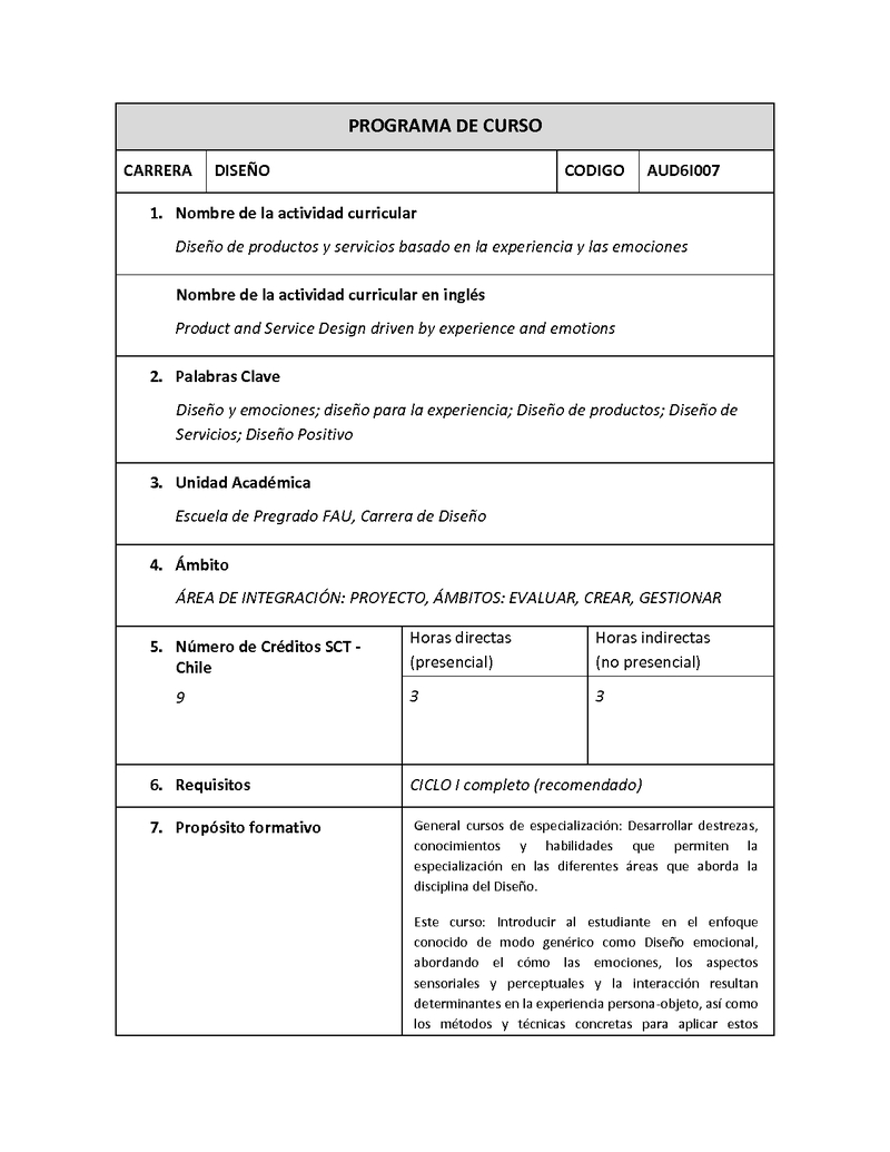 AUD6I007-1 Electivo Mención Industrial y Servicios: Diseño de productos y servicios basado en la experiencia y las emociones 2025, Segundo Semestre