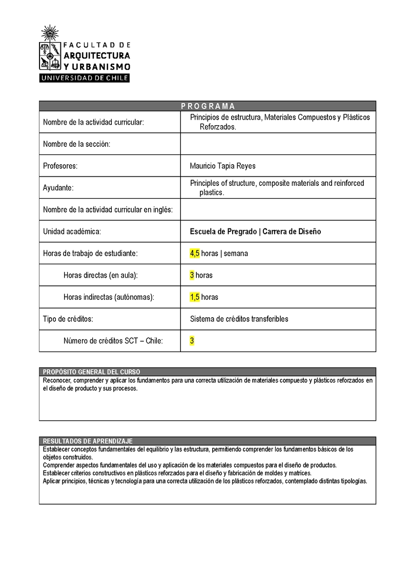 AUD7I020-1 Electivo Mención I y S: Principios de estructuras, materiales compuestos y plásticos reforzados 2025, Segundo Semestre