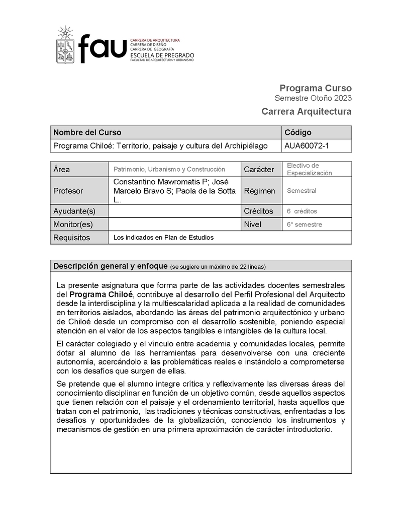 AUDIV028-1 Electivo Ambas Menciones: Programa Chiloé: Territorio, paisaje y cultura del Archipiélago 2025, Segundo Semestre