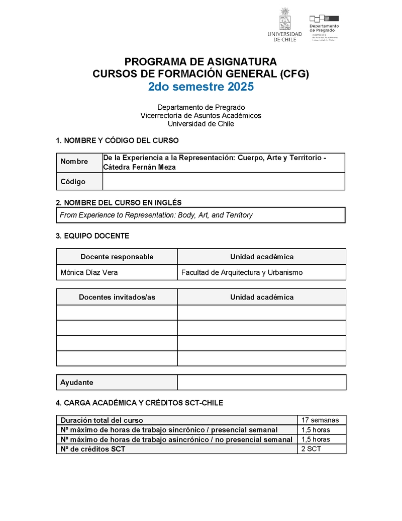 FGFAU14-1 Formación General: De la Experiencia a la Representación: Cuerpo, Arte y Territorio - Cátedra Fernán Meza 2025, Segundo Semestre