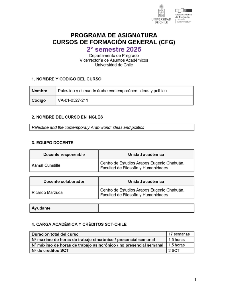 VA-01-0327-211-1 Palestina y el mundo árabe contemporáneo: ideas y política 2025, Segundo Semestre