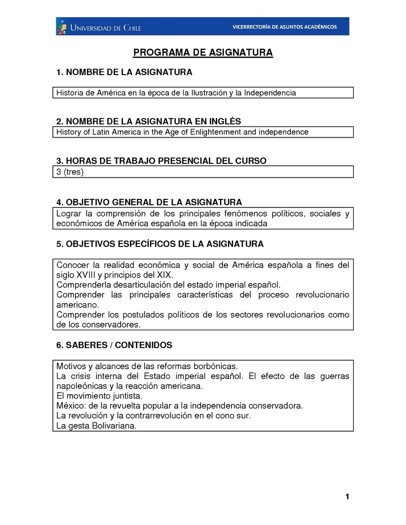 386300412-1 Historia de América en la Epoca de la Ilustración y la Rev. de la Independencia 2015, Segundo Semestre