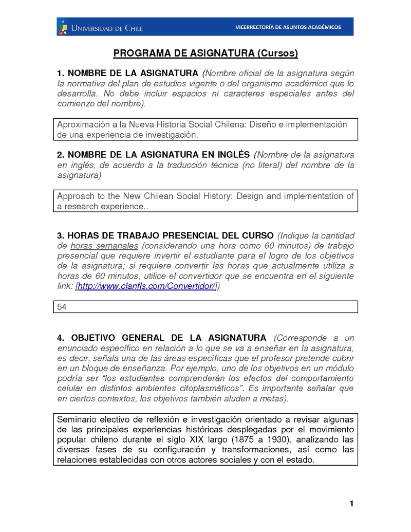 386301SE179-1 Aproximación a la nueva historia social Chilena: Diseño e implementación de una experiencia de investigación 2015, Segundo Semestre