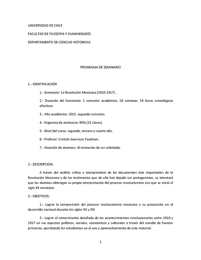 386301SE183-1 Testimonios documentales de la Revolución Mexicana,1910-1917.Una reinterpretación 2015, Segundo Semestre