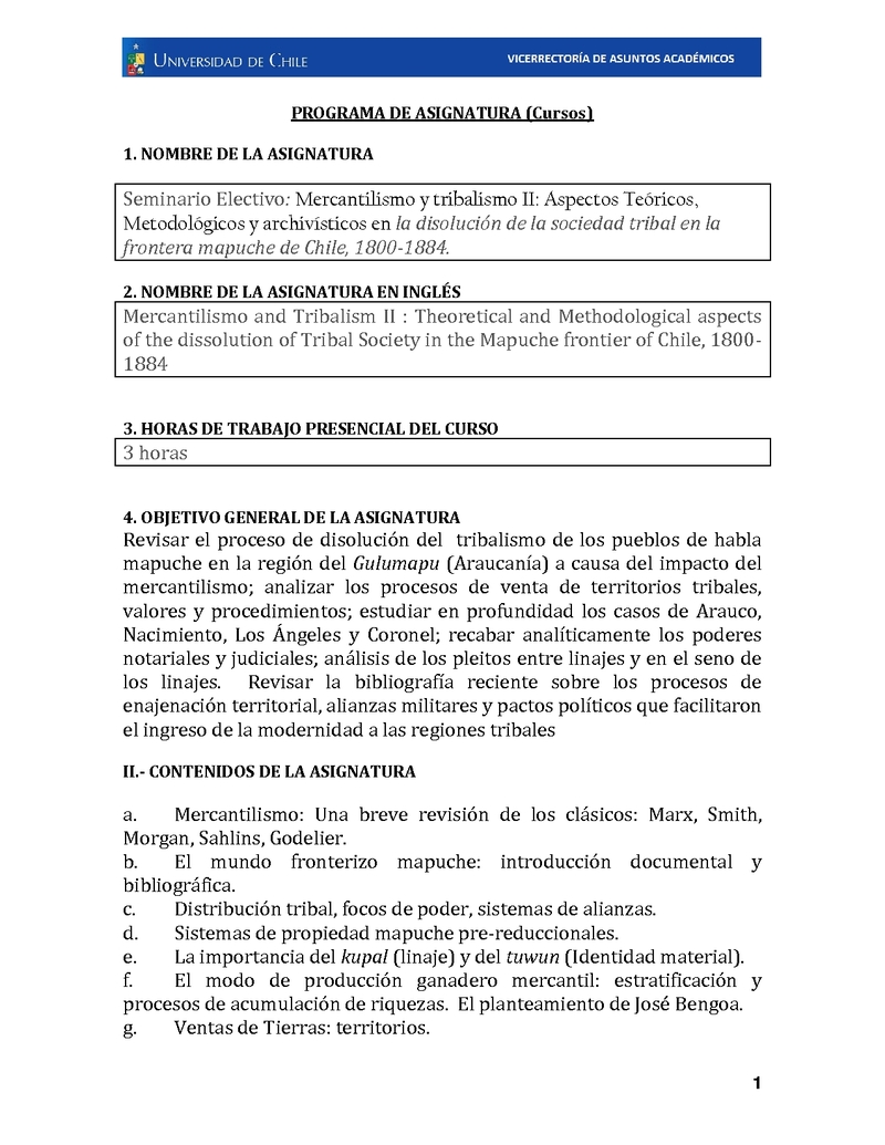 386301SE184-1 Mercantilismo y tribalismo II: Aspectos Teóricos,Metodológicos y archivisticos 2015, Segundo Semestre