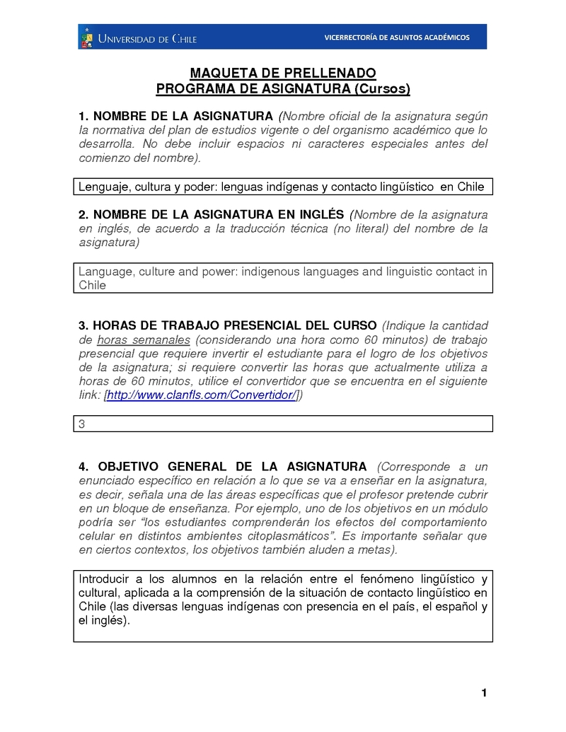 CBT0339-1 Lenguaje, Cultura y Poder: Lenguas Indígenas y Contacto Lingüístico en Chile 2015, Segundo Semestre