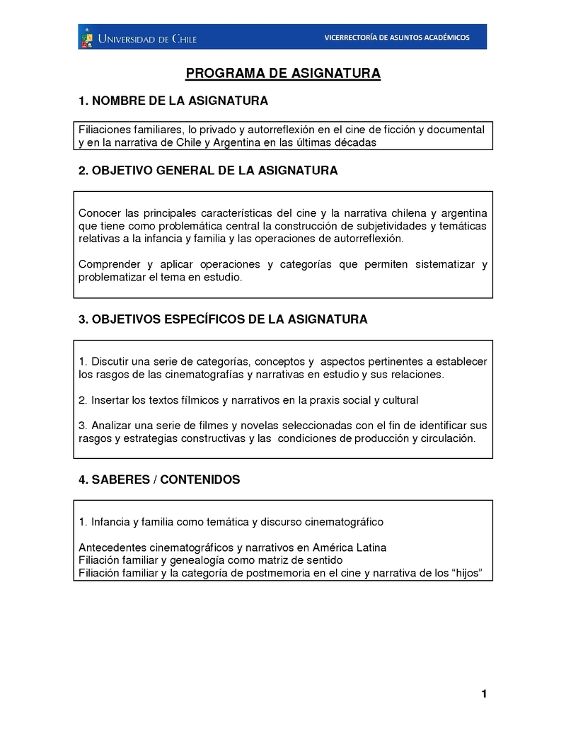 FH060355-1 Filiaciones familiares, lo privado y autorreflexión en el cine de ficción y documental y en la narrativa de Chile y Argentina en las últimas décadas 2015, Segundo Semestre