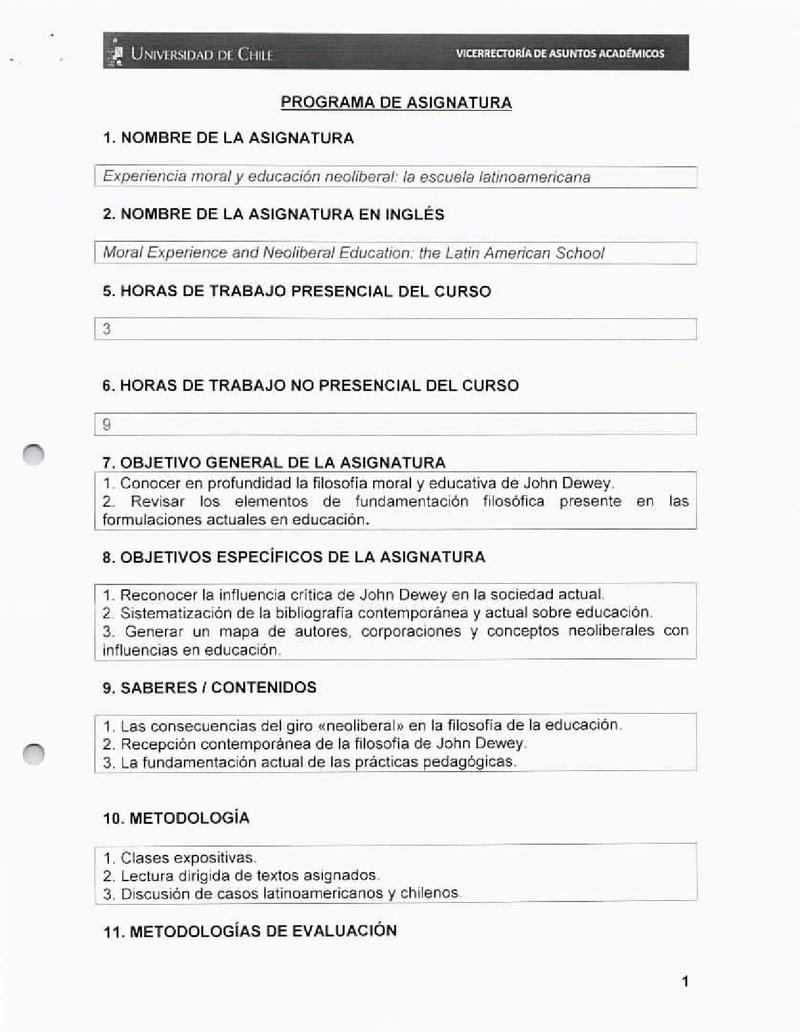 FH060411-1 Tutoría: Experiencia moral y educación neoliberal: la escuela latinoamericana 2015, Segundo Semestre